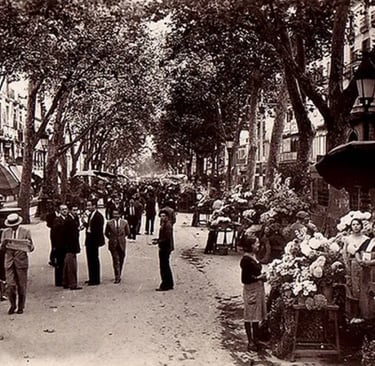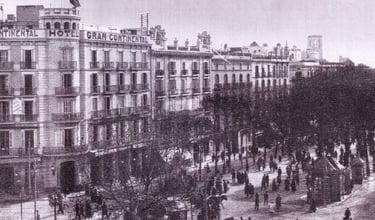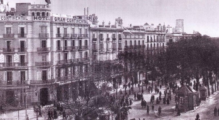 During a stay in July 1937, the two lodged at the Hotel Continental on La Rambla, a large, multistory hotel that had once catered to tourists and now housed journalists, correspondents, and foreign observers. From there, Hughes moved through the city largely on foot, spending time along La Rambla itself and in the area then known as Barri Xines, or Chinatown - today’s El Raval.